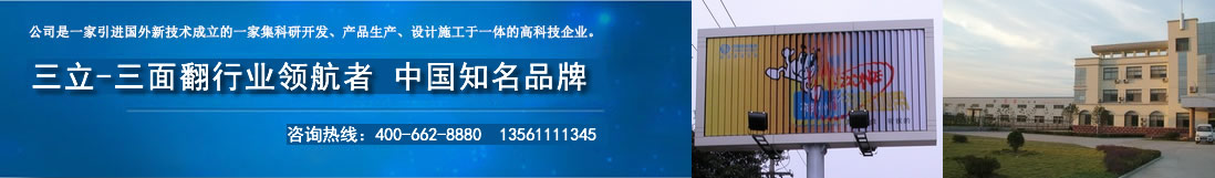 三立廣告設(shè)備有限公司是一家以及開(kāi)發(fā)、設(shè)計(jì)、生產(chǎn)三面翻廣告牌和戶(hù)外廣告設(shè)備的生產(chǎn)企業(yè)。 目前公司擁有一套完善的現(xiàn)代化企業(yè)管理制度和獨(dú)具特色的企業(yè)文化機(jī)制,在倡導(dǎo)人性化管理,"以人為本"的經(jīng)營(yíng)管理模式下,公司日益壯大,產(chǎn)品質(zhì)量不斷提升。